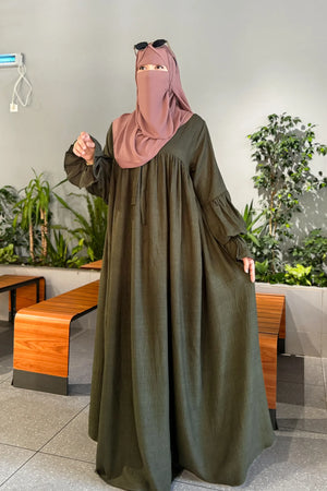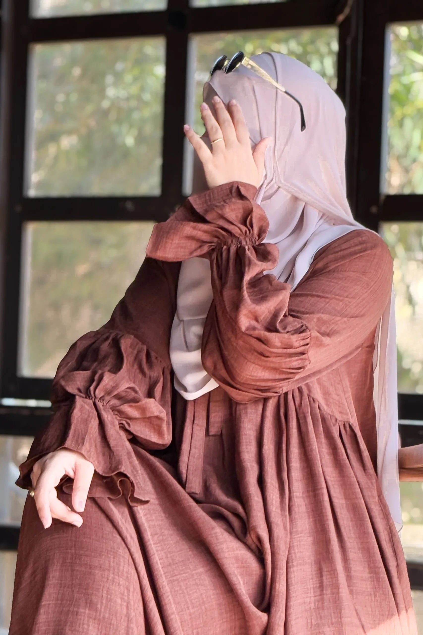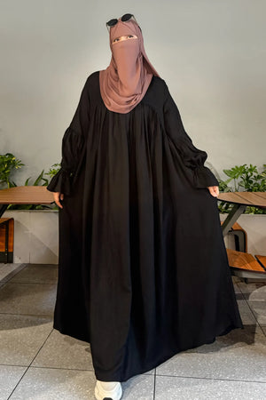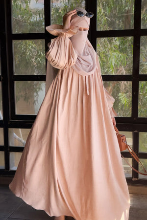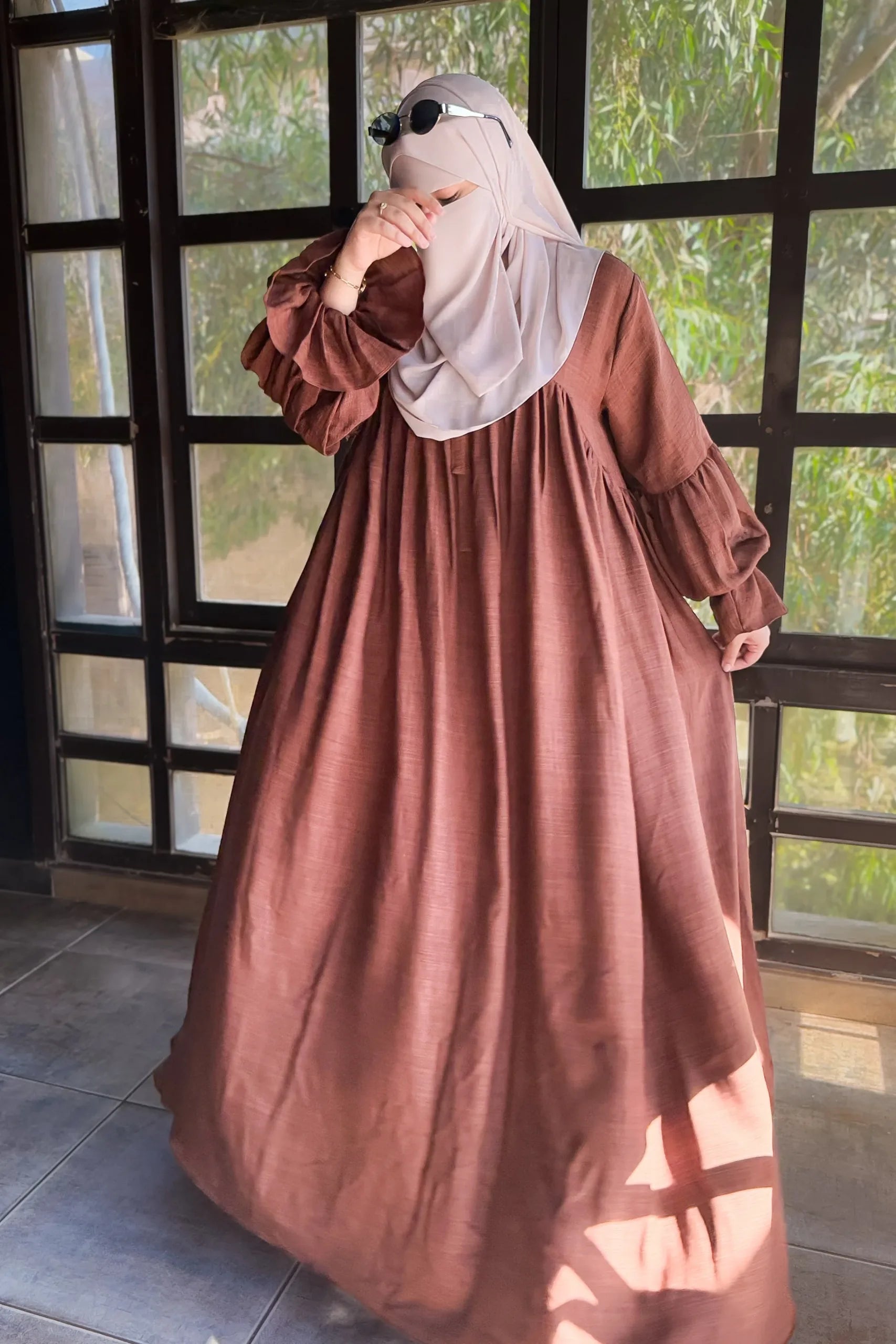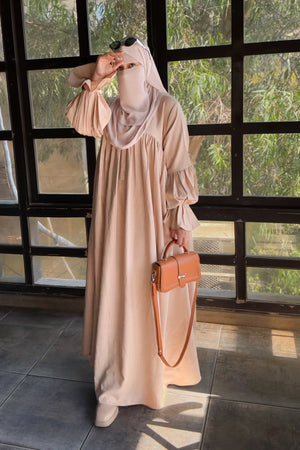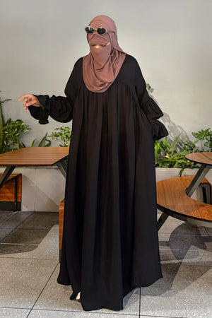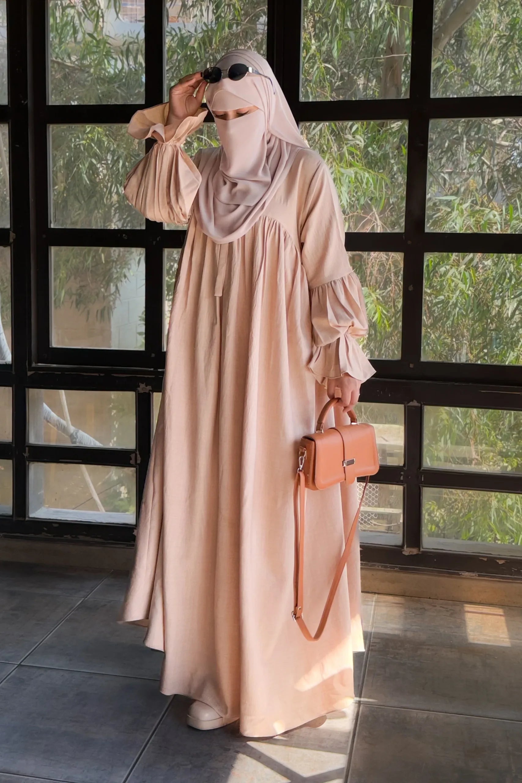 قصة واسعة وانسيابية مناسبة للبس اليومي أو الطلعات الرسمية، مع أكمام منفوشة تضيف لمسة مميزة.