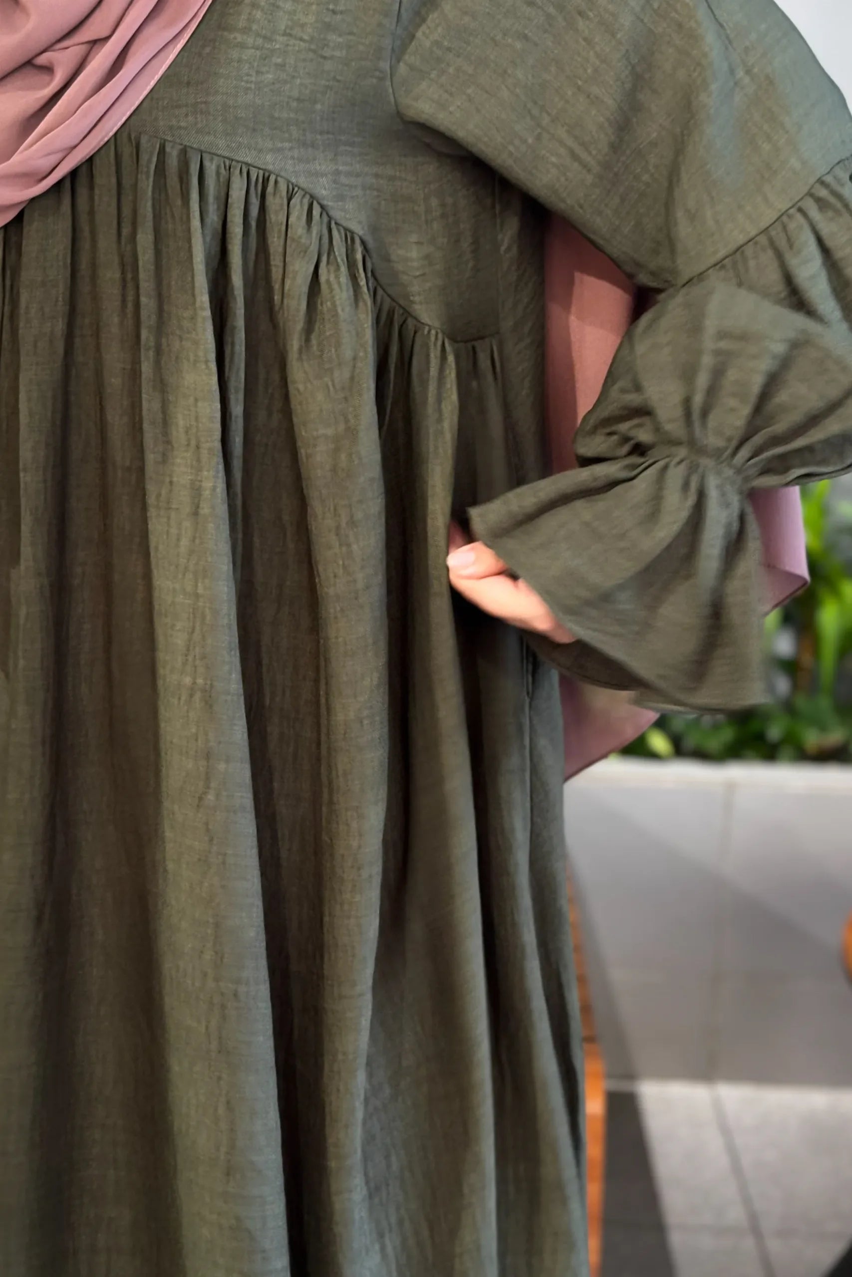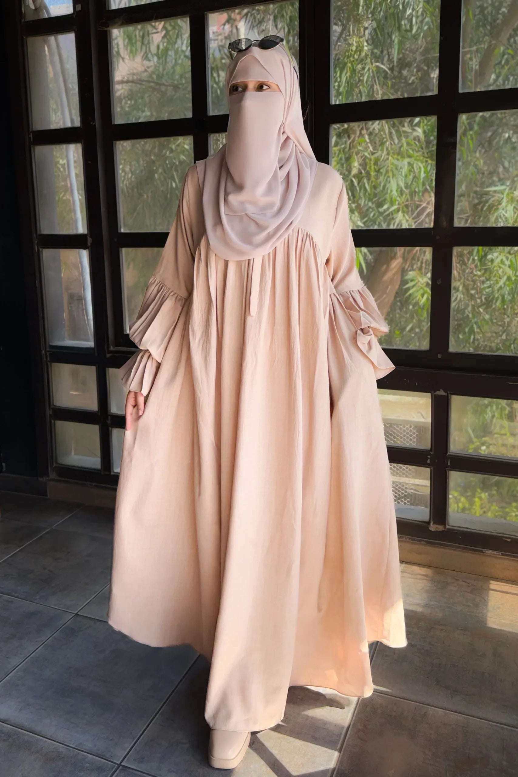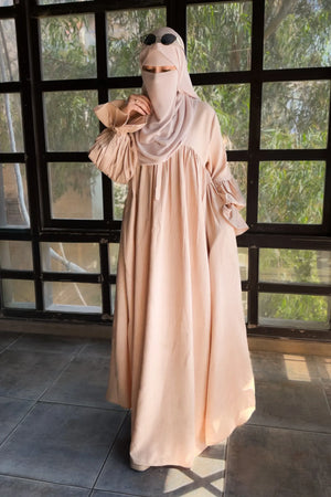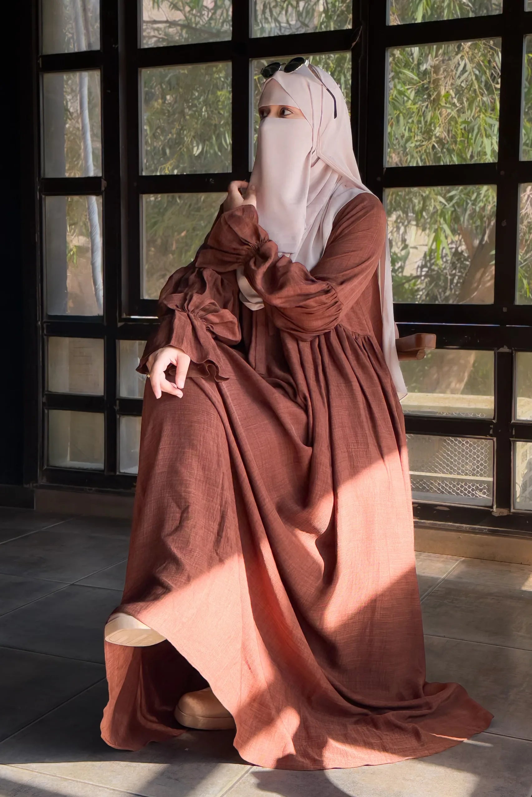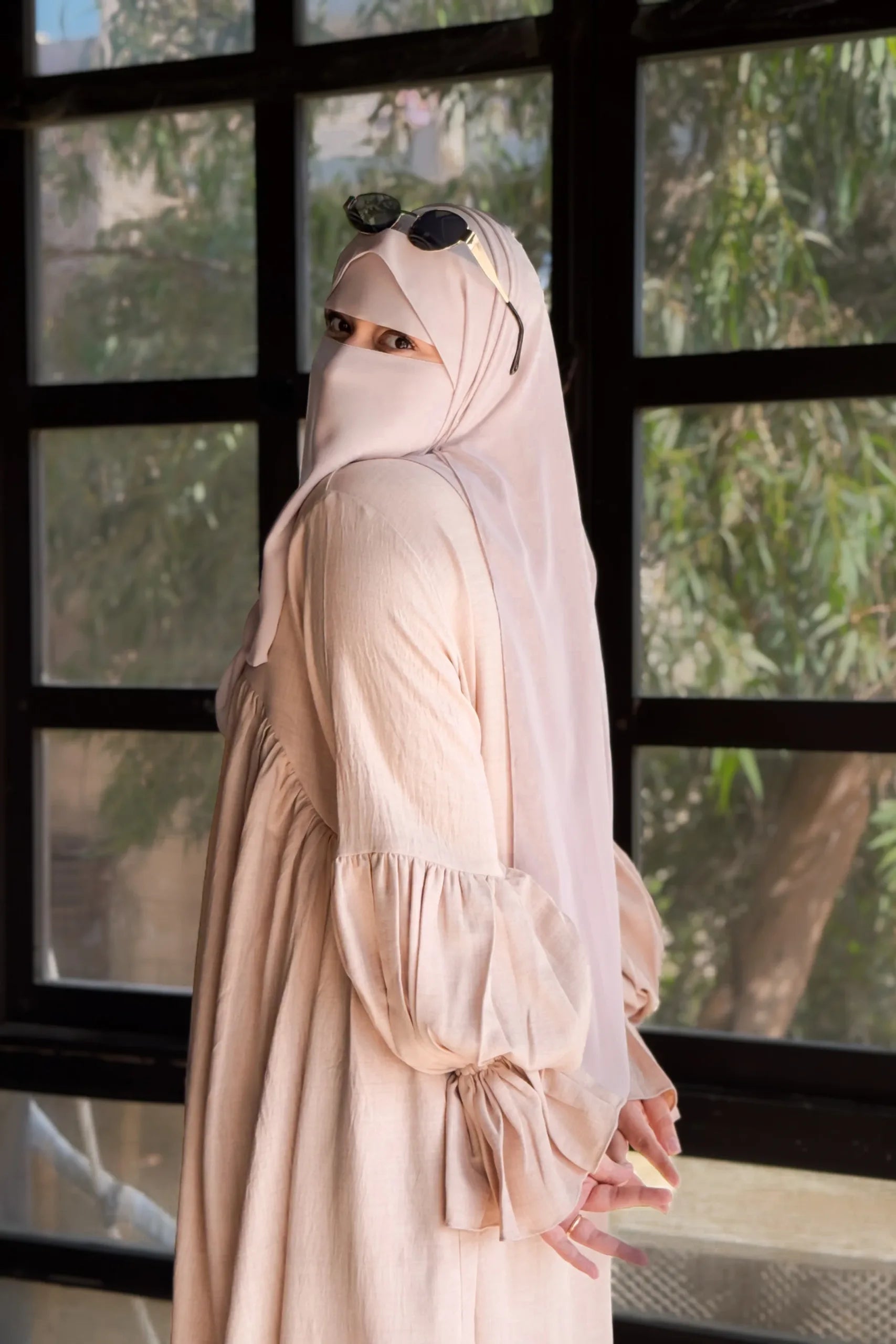 قصة واسعة وانسيابية مناسبة للبس اليومي أو الطلعات الرسمية، مع أكمام منفوشة تضيف لمسة مميزة.