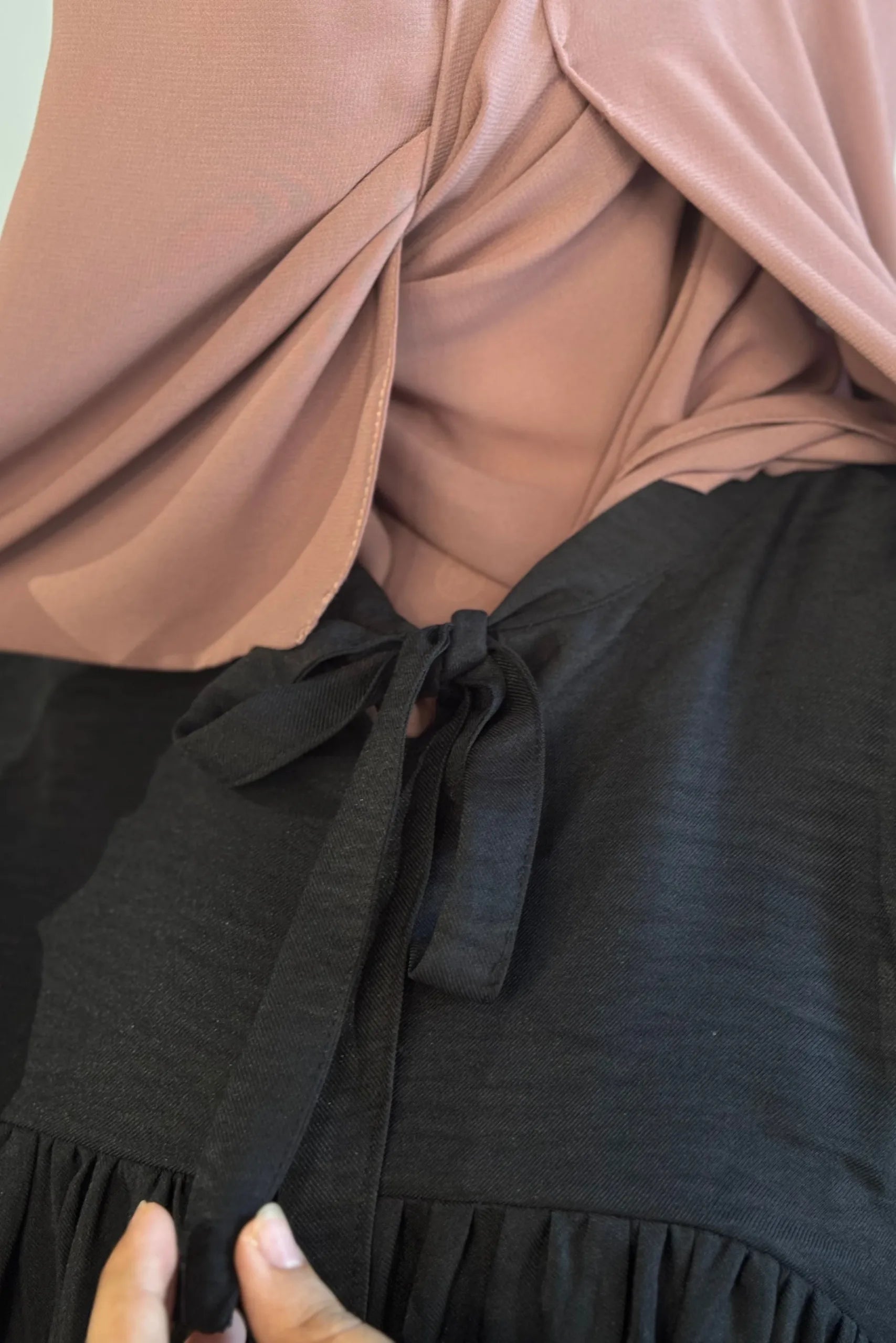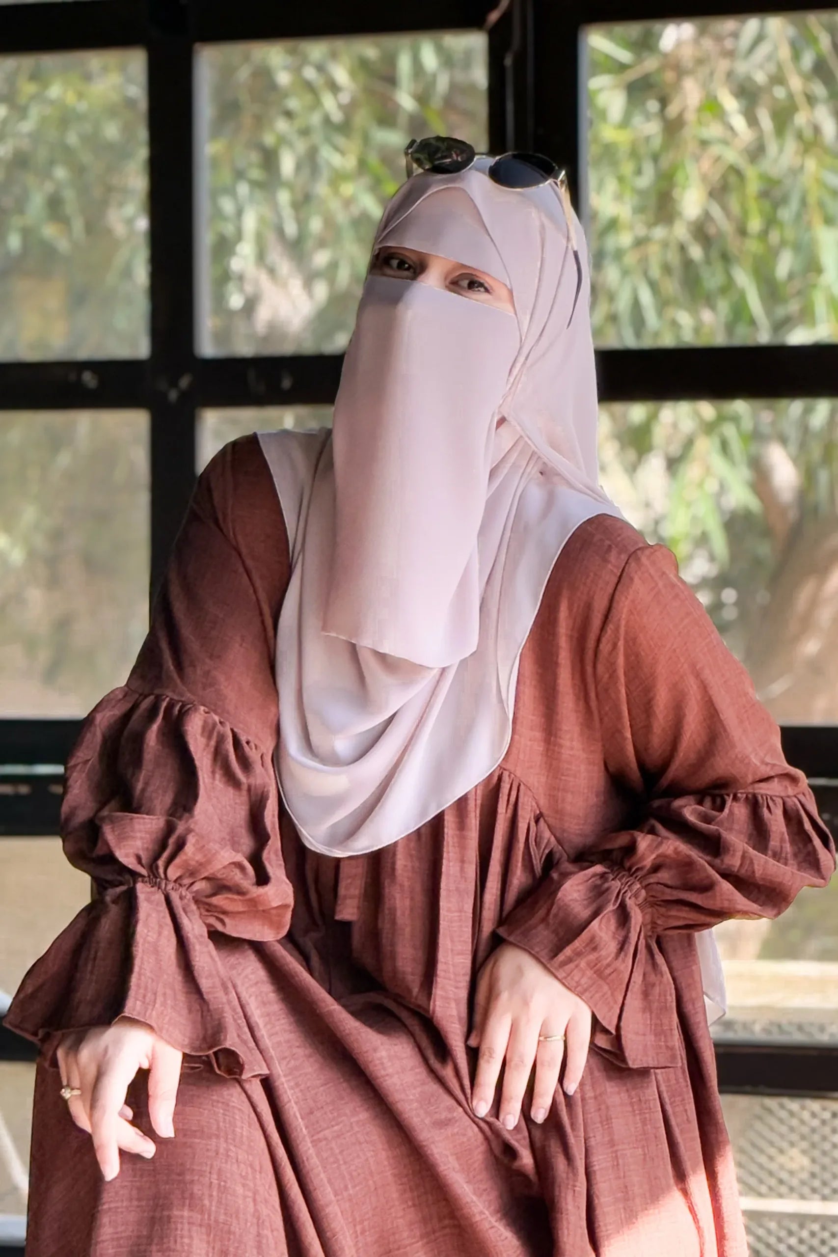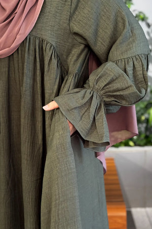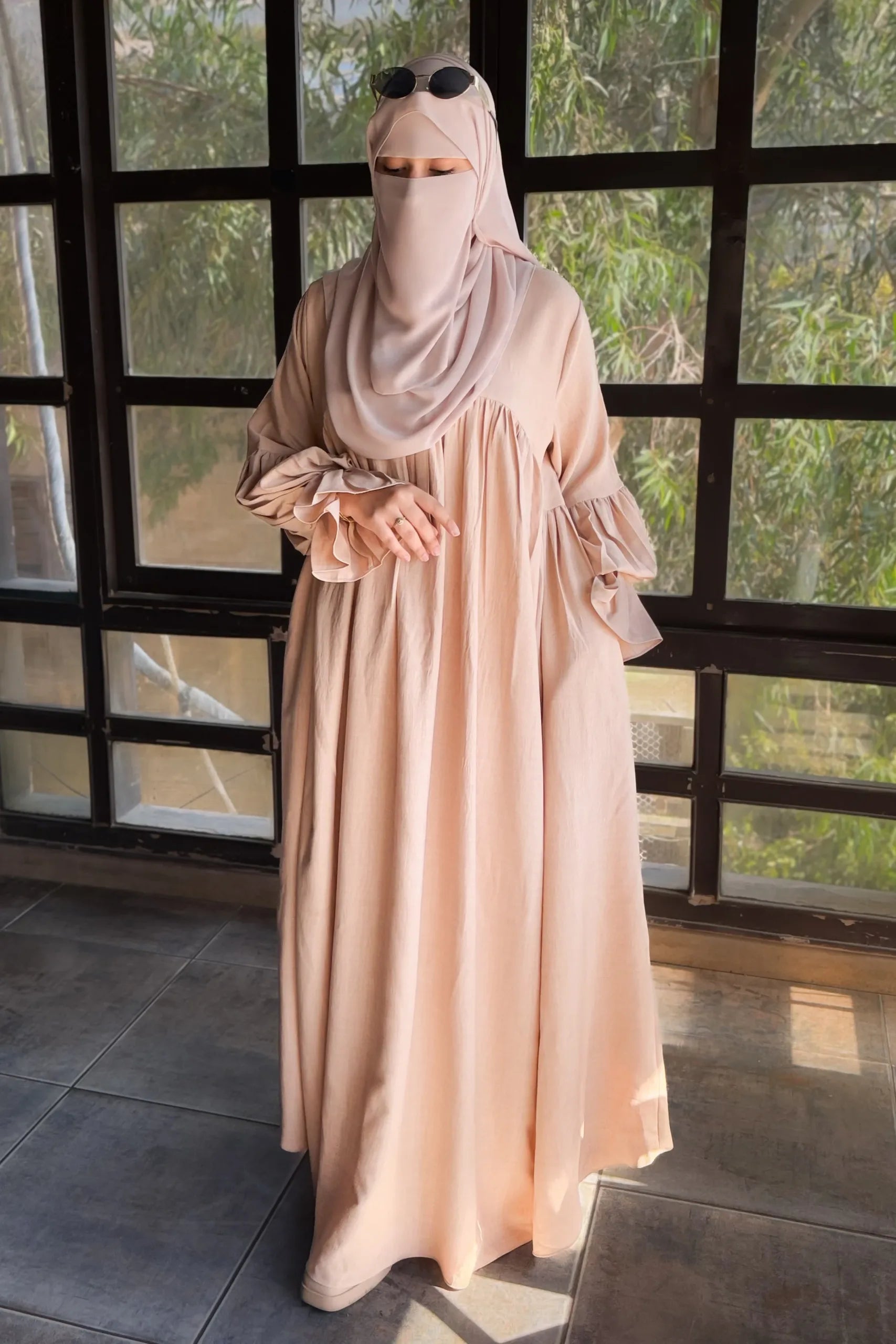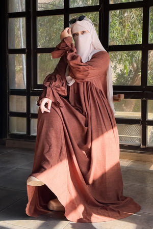 قصة واسعة وانسيابية مناسبة للبس اليومي أو الطلعات الرسمية، مع أكمام منفوشة تضيف لمسة مميزة.